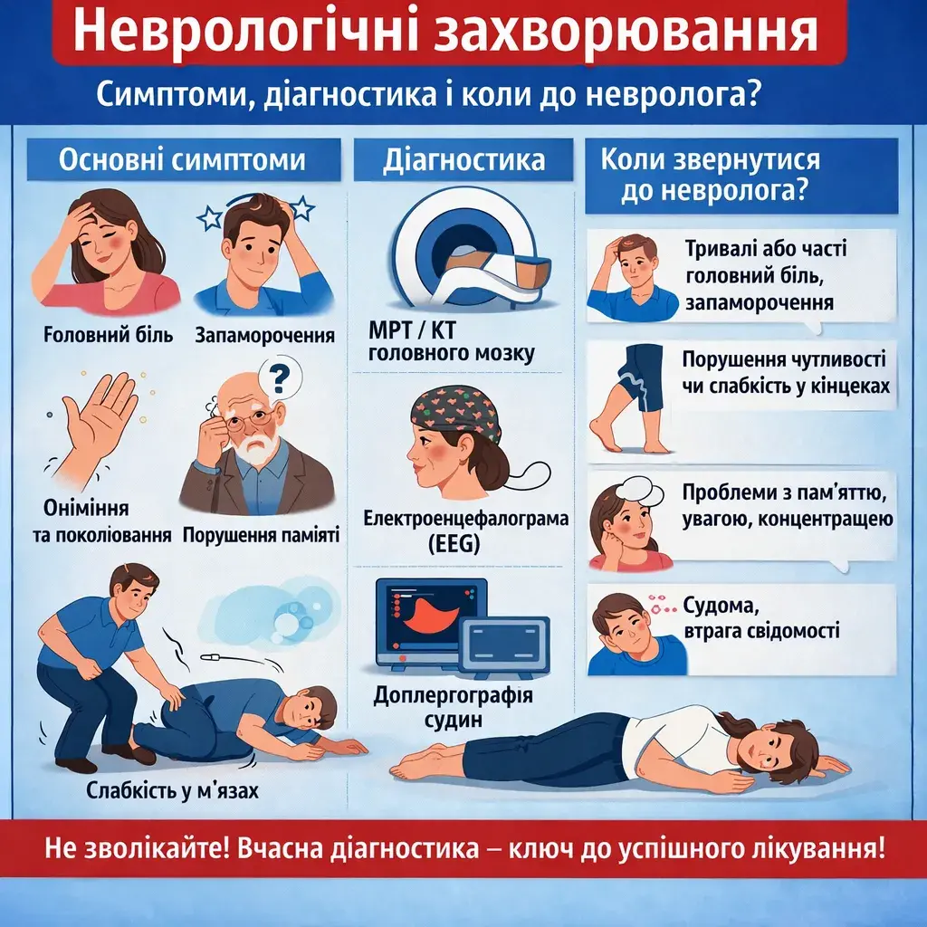 Не медлите с диагностикой неврологических заболеваний – своевременный осмотр помогает быстро определить проблему и предотвратить осложнения. На консультацию в AMBY в Днепре следует приходить с информацией о симптомах, результатах предварительных обследований и истории болезни. Врач проведет полный неврологический осмотр, подберет необходимую диагностику и составит план лечения и реабилитации. В медицинском центре доступен полный цикл услуг от первичной консультации до мультидисциплинарного сопровождения.